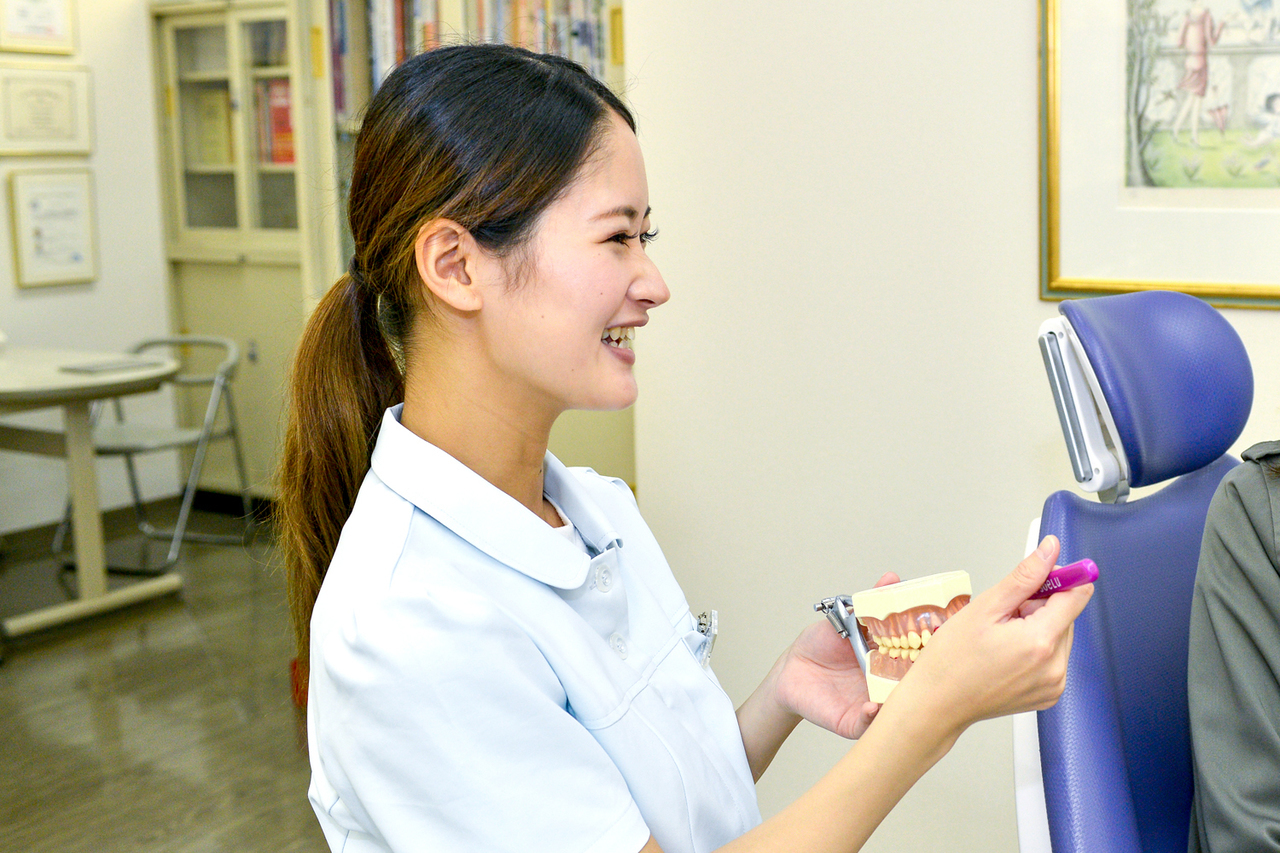 そのため、歯周病を改善するためのアドバイスを行っています。当院でこのアドバイスを行うのは歯科助手ではなく、国家資格を持つ歯科衛生士。歯科医療業務を行える、歯周病改善の専門家です。歯科医療の専門知識により、歯周病を改善するためのより効率的な歯磨きの方法や、デンタルグッズ(歯間ブラシなど)の使い方、健康なお口のための生活習慣などについてアドバイスいたします。